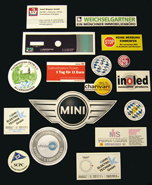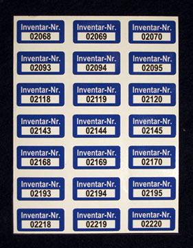 Wir bedrucken im Digital- oder Siebdruck kostengünstige Folienaufkleber, Etiketten, Prüfplaketten Siegelplomben und Inventar-Aufkleber. Letztere nach Wunsch auch mit fortlaufender Nummer. Alle Aufkleber können einzeln oder in Serie, in verschiedensten Formen (Wappenform, rund, oval oder eckig) und unterschiedlichsten Folientypen hergestellt werden. Falls Sie Unterstützung bei der Gestaltung brauchen, stehen wir Ihnen gerne zur Verfügung. Größere Aufkleber können wir für Sie fachgerecht verkleben.