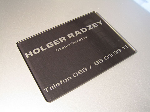 Als Material für die Grundplatte stehen uns Aluminium, Aluverbund, Glas, Acrylglas, PVC und eloxiertem Aluminium in mehreren Stärken zur Verfügung. Die Beschriftung Ihres Firmenschildes erfolgt durch Folienplott, Digitaldruck oder Siebdruck. Wir finden für Ihren jeweiligen Verwendungszweck die geeignete Kombination aus Grundplatte und Beschriftungsart. Für die Befestigung können die Schilder nach Ihren Angaben gebohrt werden. Abstandhalter und Zierkappen haben wir auch in unserem Programm.